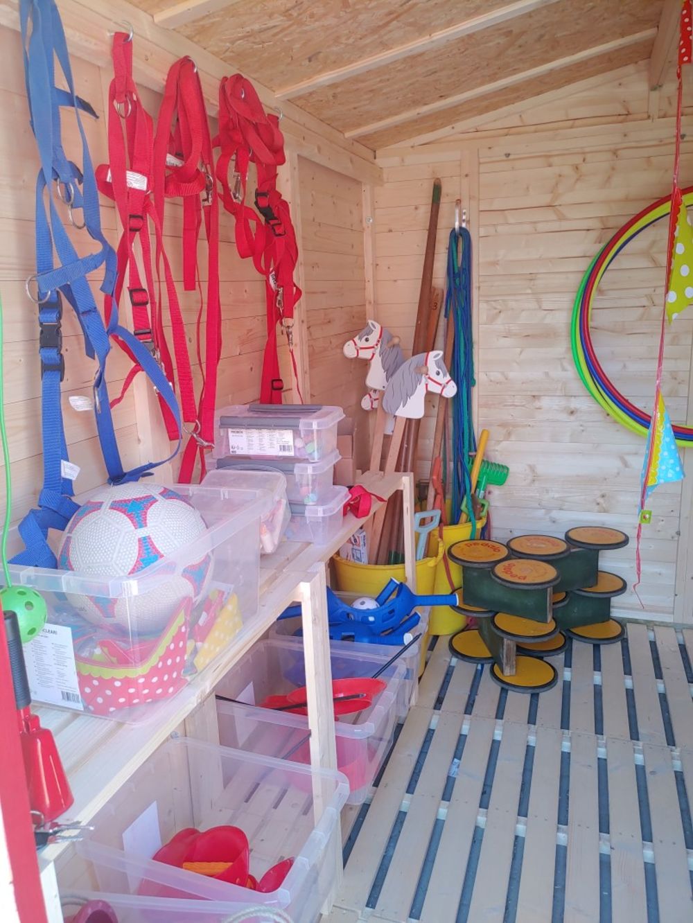 Am 31.05.2023 versammelten sich alle Kinder unserer Schule auf dem Pausenhof, um feierlich die neue Spieleausleihe zu eröffnen. Zur Einweihung schnitten Herr Hagemann und die Vorsitzenden des Fördervereins symbolisch ein rotes Band durch und im Anschluss präsentierten die Kinder der 4. Klasse stolz die Vielfalt der neuen Spielgeräte. Die Schüler und Schülerinnen nahmen dieses Angebot begeistert auf und waren in heller Vorfreude alles auszuprobieren.